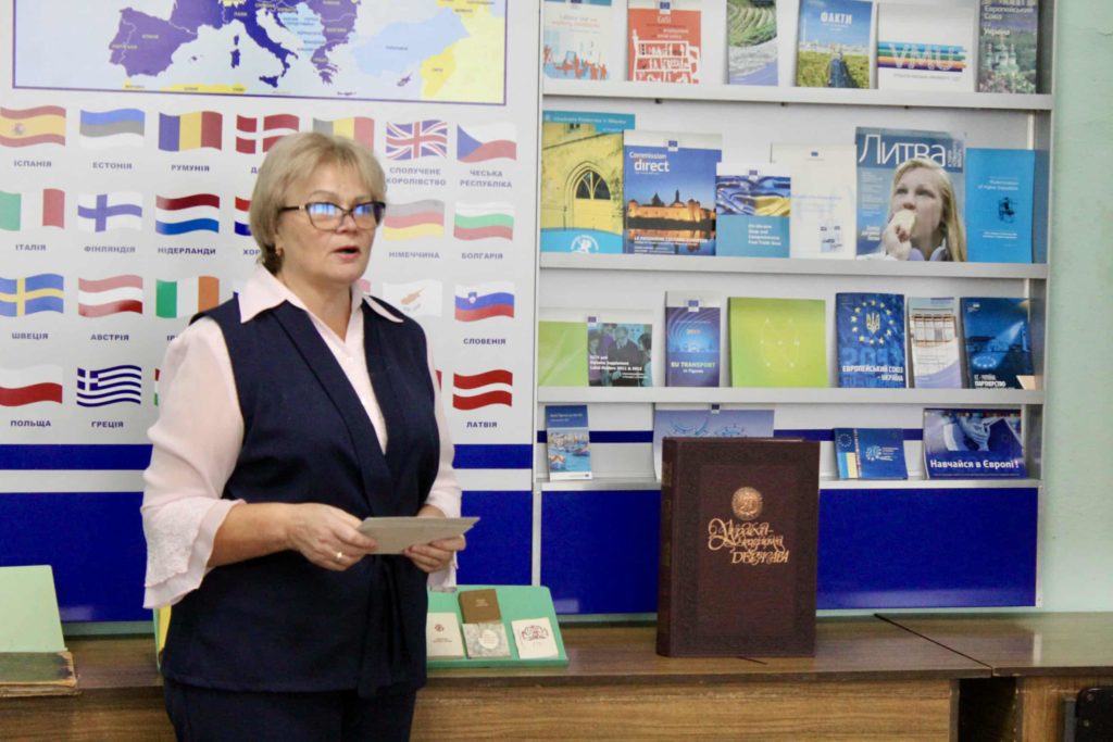 Олена Анатоліївна щиро привітала всіх присутніх в читальній залі з Всеукраїнським днем бібліотек – святом бібліотекарів і любителів книги та виразила вдячність за високий професіоналізм, сумлінну працю, відданість бібліотечній справі колективу університетської бібліотеки – скарбниці знань і духовності.
