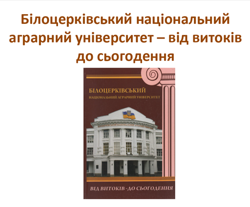 Кожного відвідувача бібліотеки, ще при вході зустрічає книга «Білоцерківський національний аграрний університет – від витоків до сьогодення» – екскурс в історію «Alma Mater» багатьох поколінь студентів.
