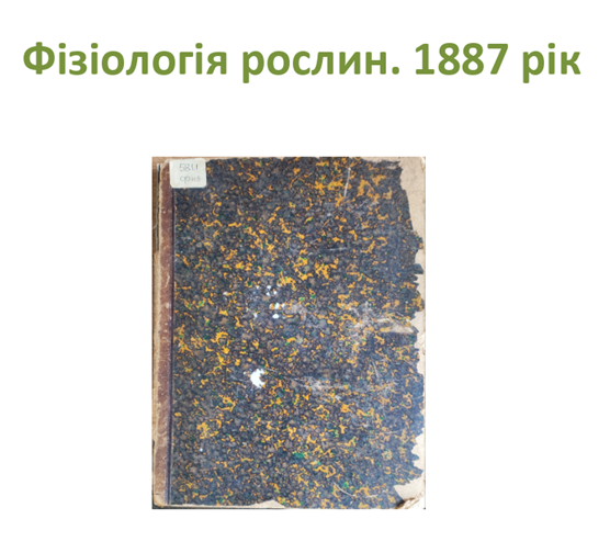 Найстаріша книга в нашому фонді – «Початкові основи чистої математики, створені Миколою Фуссом, витягнуті з цієї науки знаменитого Ейлера», надрукована типографією «департамента народного просвіщенія» в 1820 році та «Фізіологія рослин за лекціями вченого Климента Аркадійовича Тимирязєва, писані студентами від руки». І в такому рукописному вигляді зібрана і видрукувана приватним способом, датоване 1887 роком.