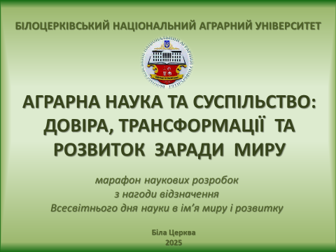 ✔ З нагоди відзначення Всесвітнього дня науки в ім’я миру та розвитку в Білоцерківському НАУ відбувся Марафон наукових розробок «Аграрна наука та суспільство: довіра, трансформації та розвиток заради миру».