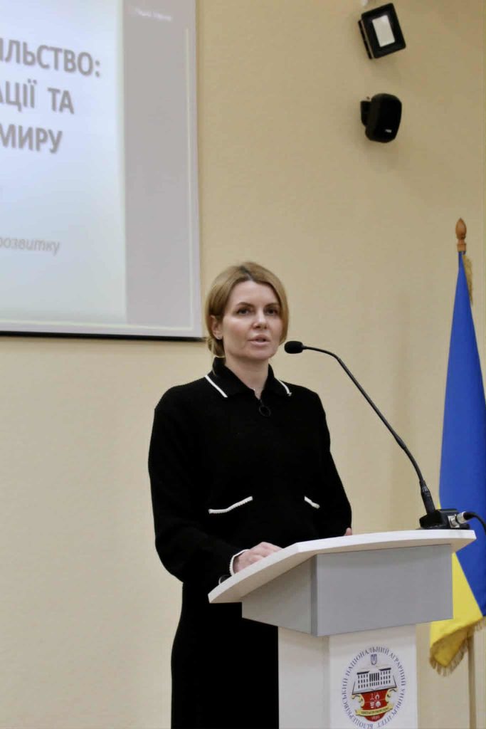 Олена Анатоліївна привітала усіх присутніх з святом і зазначила важливість єднання навколо наукових відкриттів в ім’я миру та розвитку. Наголосила, що університетська наукова спільнота працює на розвиток національного аграрного сектору.