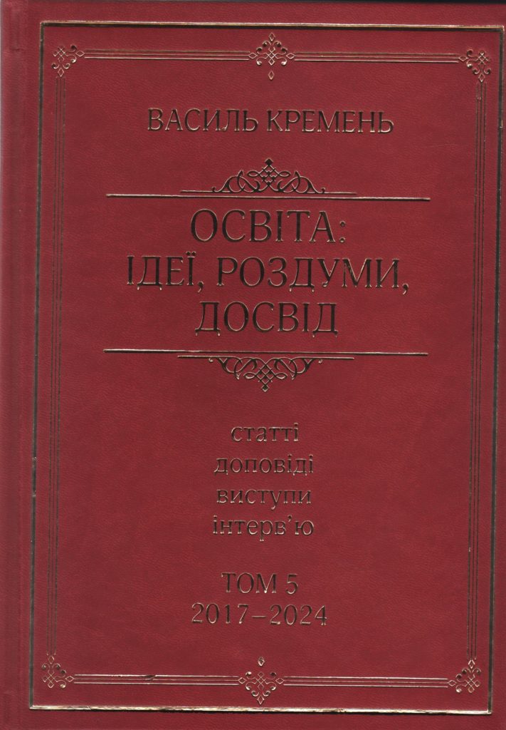 Кремень В. Освіта: ідеї, роздуми, досвід: Статті, доповіді, виступи, інтерв’ю / зібрання тв. у п’яти томах : Т. 5. 2017 – 2024. – Київ : Грамота, 2025. – 376 с.