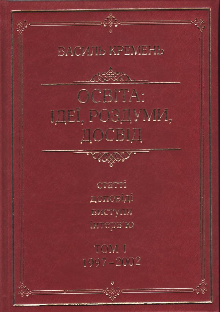 Кремень В. Освіта: ідеї, роздуми, досвід: Статті, доповіді, виступи, інтерв’ю / зібрання тв. у п’яти томах : Т. 1. 1997 – 2002. – Київ : Грамота, 2025. – 456 с.