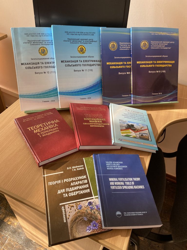 «Теоретична механіка в прикладах і завданнях» (В. М. Булгаков та ін., 2014 р.) та деякі випуски загальнодержавного збірника «Механізація та електрифікація сільського господарства (ННЦ «ІМЕГС» 2019, 2020).